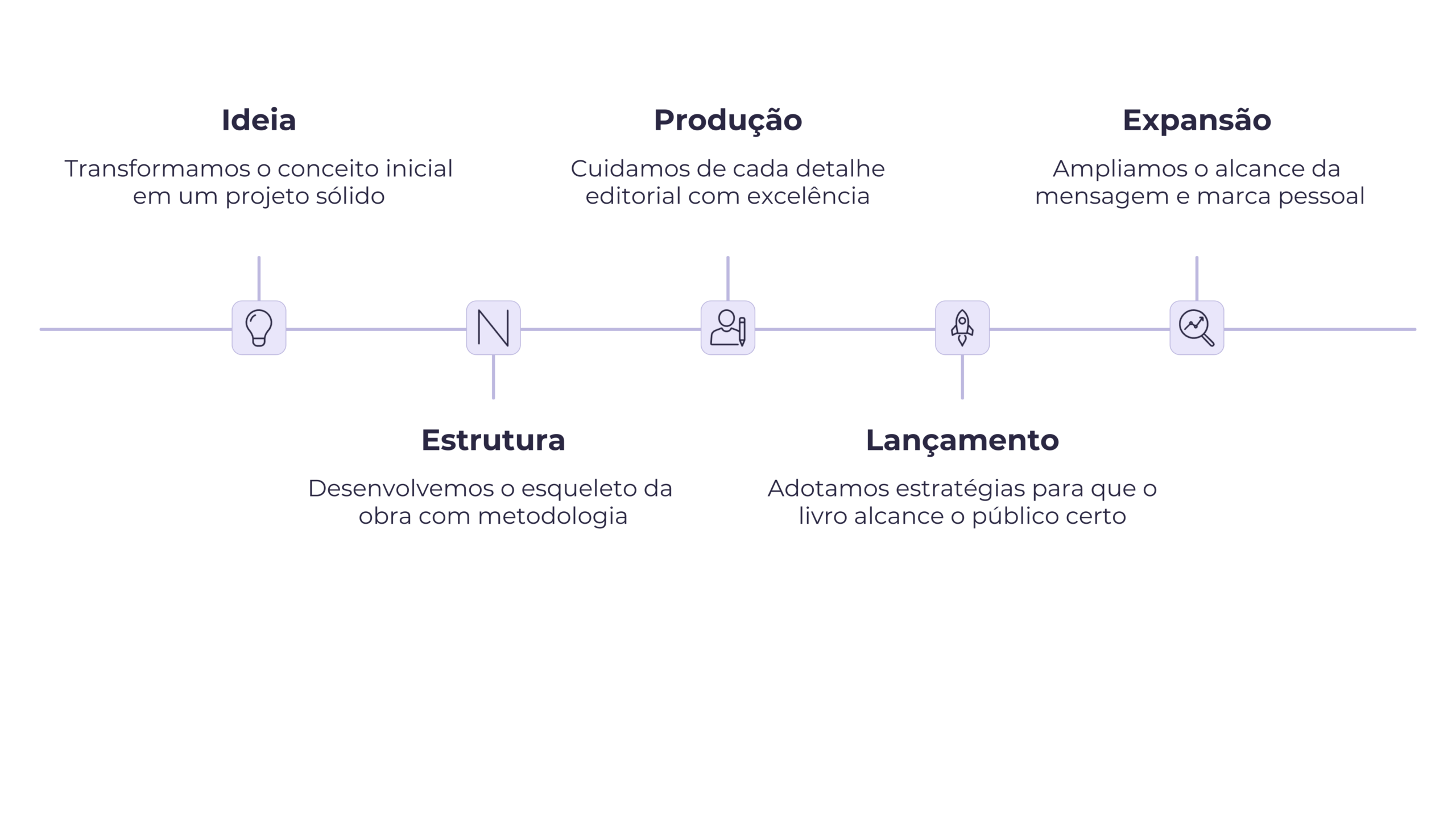 Oferecemos orientações estratégicas de divulgação e contamos com parceiros terceirizados para apoiar autores que desejam realizar um evento exclusivo de lançamento, seja presencial ou online.